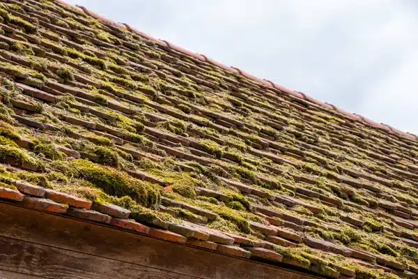 Pan de toiture complètement couvert de mousse